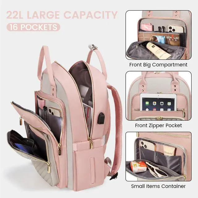 LOVEVOOK Laptop Backpack for Women, Water Resistant Travel Work Backpacks Purse Stylish Business Teacher Nurse Computer Bag with USB Charging Port, Fits 15.6" Laptop