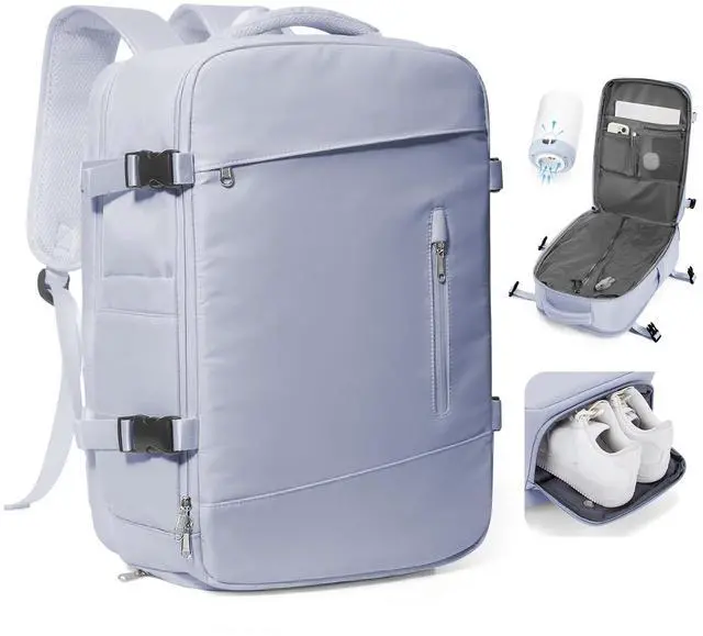 This travel backpack also comes with a wet/dry separator pocket and separate shoe compartment, which can help you separate wet and dry items from dirty clothes without getting other items dirty.