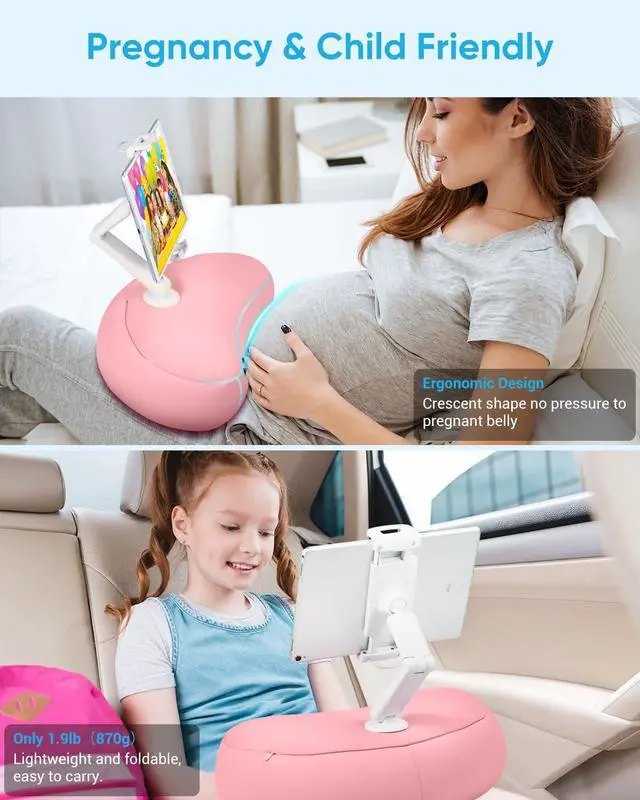NEARPOW Kindle Pillow Stand, Tablet Stand with Pillow Compatible with 4.7"-15.6" iPad,iPhone, Samsung, Google, 360°Adjustable Phone Pillow Holder for Bed with Soft Bean Bag, Pregnancy & Child Friendly