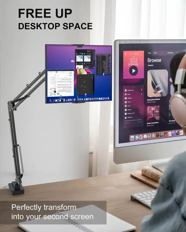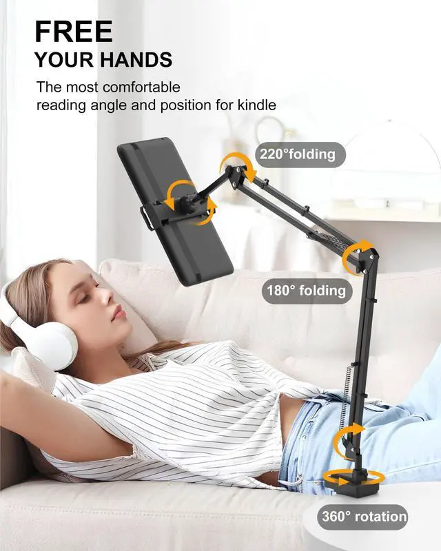 17.3" Portable Monitor Stand, Foldable Tablet Arm Mount for Desk, Kindle Holder for Reading in Bed, Adjustable Phone Stand Compatible with iPad Pro Air Mini, Samsung Galaxy Tab S9, Kindle, Cell Phone