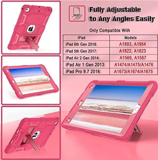 CompatibilityOnly for iPad 9.7 inch 6th generation (2018 Release), iPad 5th generation (2017 Release) and iPad Air 2 (2014 Release). Model number: A1893/A1954/A1822/A1823/A1566/A1567. Please check back bottom of your iPad case to find the model number.
