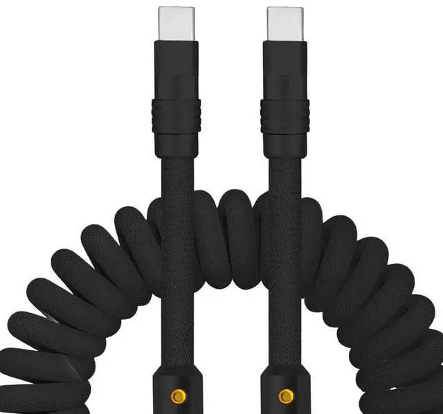 chubbycable Curly Chubby - 240W Coiled USB C Cable Spring Retractable Fast Charging Cable for Car Compatible with CarPlay, Android Auto, Black, Type-C to Type-C, 2.29FT-3.6FT