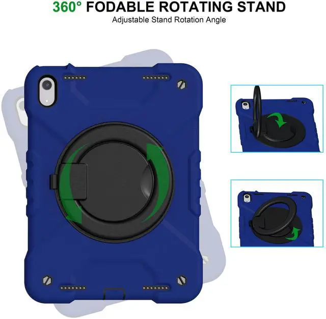Andnary Case for iPad (A16) 11th Generation 11 inch 2025/10th Generation 10.9 inch 2022, Heavy Duty Cover with 360° Rotate Handle/Screen Protector/Bracket/Pen Holder/Shoulder Strap (Navy+Black)
