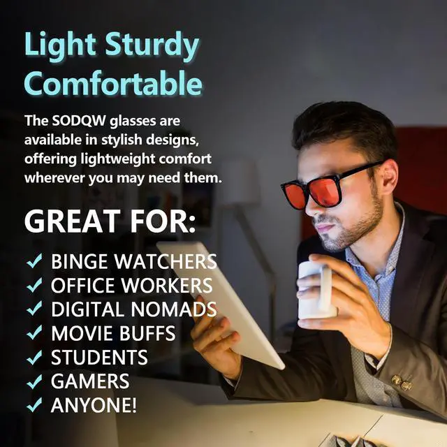 Advanced Blue Light Filtering: Equipped with orange tinted lenses that are specially designed to filter out blue light, these glasses by SODQW are your first line of defense against digital eye strain. Whether you're working on a computer, binge-watching your favorite series, or immersed in an intense gaming session, your eyes will thank you.