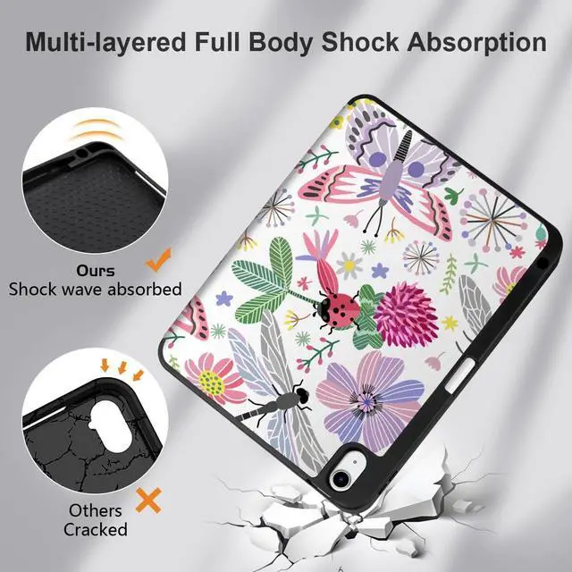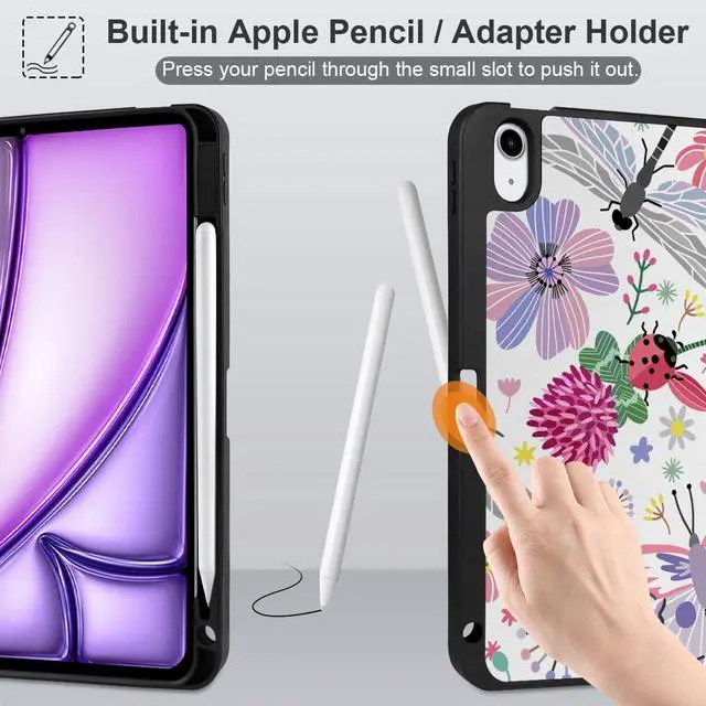 DONGKE for iPad Air 11 Inch Case M3 2025 / M2 2024 & iPad Air 5th 2022 / 4th Generation 2020 10.9 Inch, Ultra Thin Soft TPU Back Cover with Pencil Holder Support Auto Wake/Sleep, Dragonfly