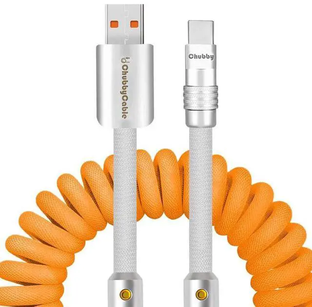 chubbycable Curly Chubby - 240W Coiled USB C Cable Spring Retractable Fast Charging Cable for Car Compatible with CarPlay, Android Auto, Orange and Gray, USB-A to Type-C