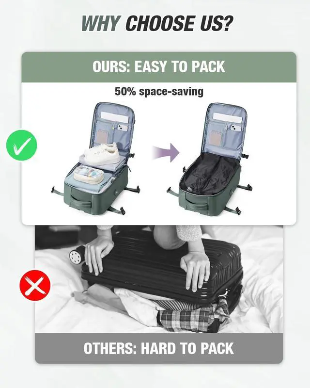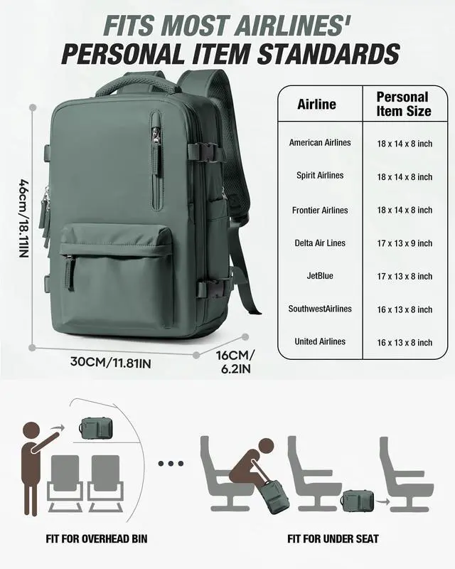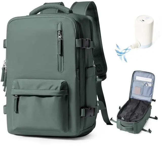 WEPLAN Vacuum Backpack Travel with Pump,Vacuum Seal Backpack Travel,Flight Approved 18x14x8, Work Business Vacpack Laptop Backpack for Women Men,Army Green