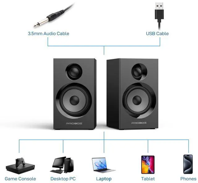 Probox BT16 Active Bookshelf Speakers 3.5" Woofer with 1" Tweeter, 60W RMS-Bluetooth 5.3, Built-in 24bit DAC Dynamic 3D 2.0 Surround Sound, Computer Gaming PC Speakers - Black