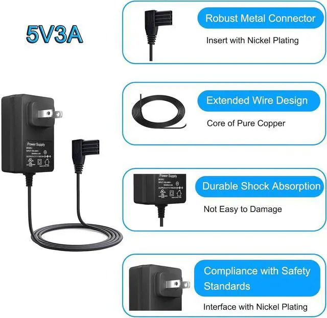 SpecificationInput: AC 100V-240Volt 50-60HZ Output: DC 5V Max 3A, AC adapter for Moog Enteralite Infinity Pump. Cord Length: 9.8 FT longer power supply enough to use the charger for Zevex Infinity Orange Pumps charge any situation