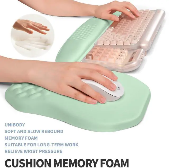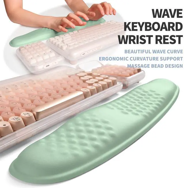 Gleamtide 2-in-1 Ergonomic Set, Wave Keyboard Wrist Rest and Massage Slope Mouse Pad Wrist Support, Rebound Memory Foam for Relieve Carpal Tunnel Syndrome and Wrist Pain (Light Green)