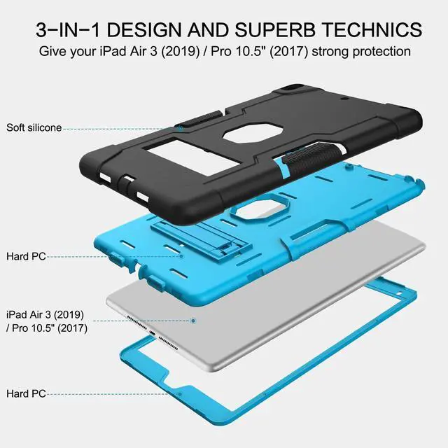 Premium Materials: High quality durable PC plastic cover and soft silicone bumper with fine craftsmanship effectively protect your iPad Air 3 2019 / iPad Pro 10.5" 2017 from drops, shocks, impacts and scratches during daily use. Smooth surface and nice texture, of course, it is totally anti-slip, more than comfortable to hold your new iPad in hands with this protective case on.