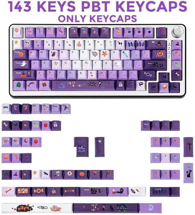 Package Includes: 1 set of 143 PBT keycaps + keycap puller (keyboard not included)