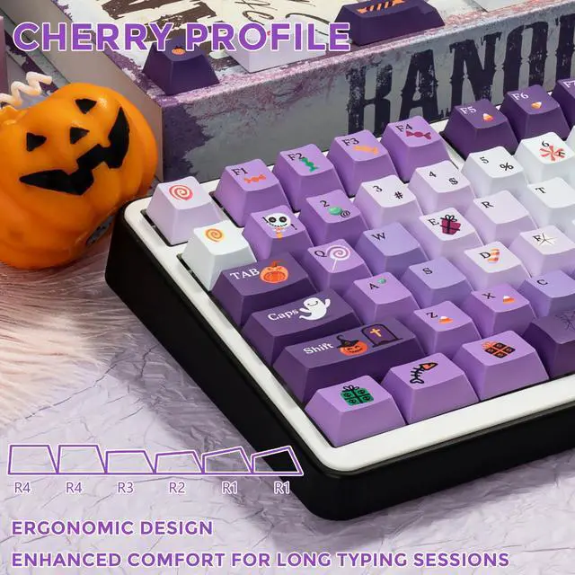 Cherry Profile KeycapsErgonomically designed Cherry height, designed for backlit/non-backlit mechanical keyboards, no fatigue for long time use