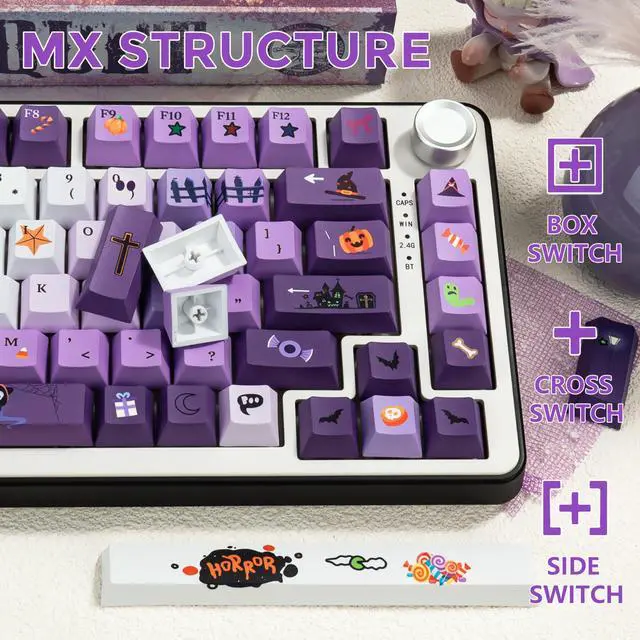 Widely Compatible143 keys Halloween keycaps can be used for most cherry MX switch mechanical keyboards and any keys with "+"Switches, it can fit for 61/64/68/75/84/87/96/98/104/108 mechanical keyboard