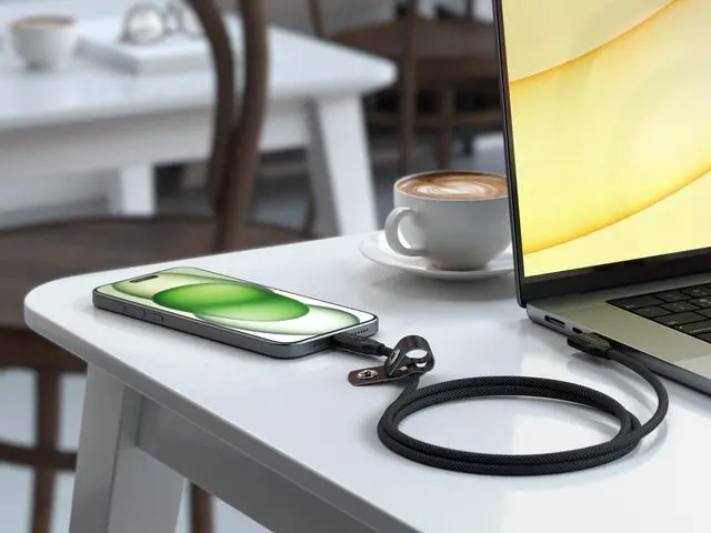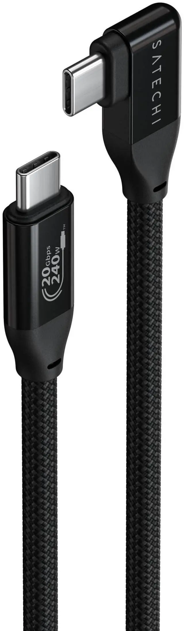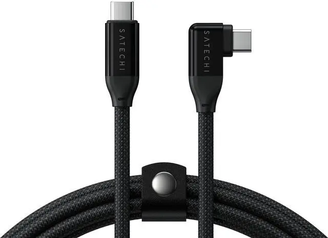 Introducing your new go-to solution for effortless power and seamless connectivity. Enjoy powerful charging, lightning-fast data transfers, and crystal-clear streaming with up to 240W of power delivery, 20Gbps transfer speeds, and 4K/60Hz video output. The Right-Angle USB-C Data & Charge Cable (1m) features a durable braided cable with a reinforced neck, aluminum USB-C connectors, and vegan leather cable management to keep your workspace clutter-free while promoting sustainability. Crafted with comfort and efficiency in mind, its ergonomic right-angle design significantly reduces strain on both the cable and your device's USB-C port, so no more worrying about bending or fraying, even in tight spaces.