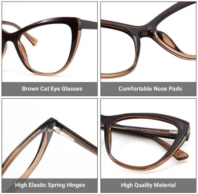 Zeelool Stylish TR90 Oversized Cat Eye Glasses with Non-prescription Clear Lens for Women Shelby OT414973-05 Brown