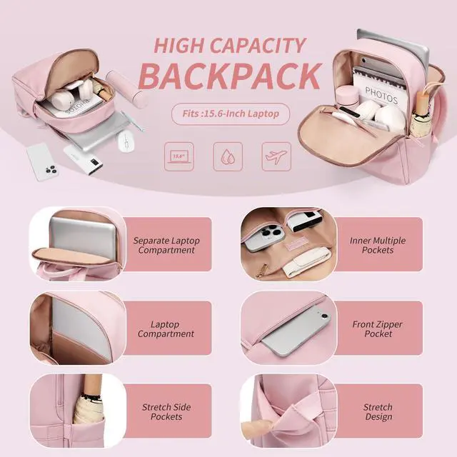 Stylish and Practical - Elevate your everyday style with our laptop backpack for women. Available in Apricot, Black,Pink, the backpack offers a sleek design and a spacious interior to fit your daily essentials. Measuring 12.4*5.5*16.5in/31.5*14*42 cm, it is perfect for work, travel and college.