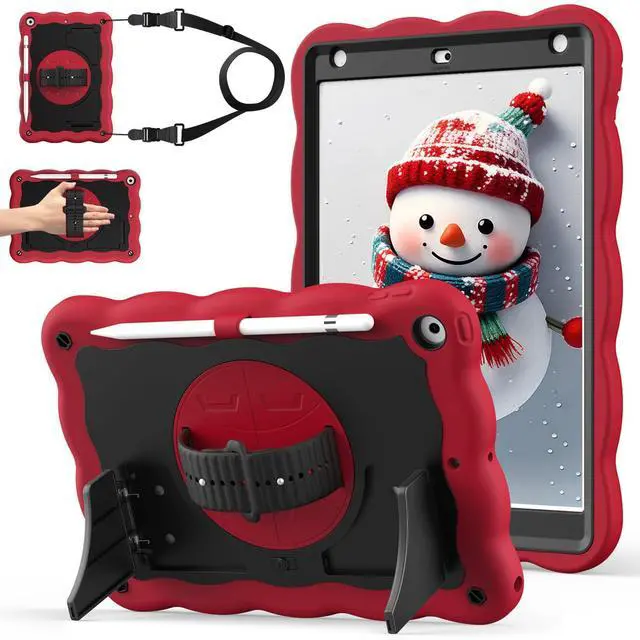 ZoneFoker Case for iPad 9th Generation Case / 8th Gen / 7th Gen 10.2 Inch 2021 2020 2019, Heavy Duty Shockproof Protective Cover with Pencil Holder [360° Rotate Strap] & Stand for Kids, Red Black