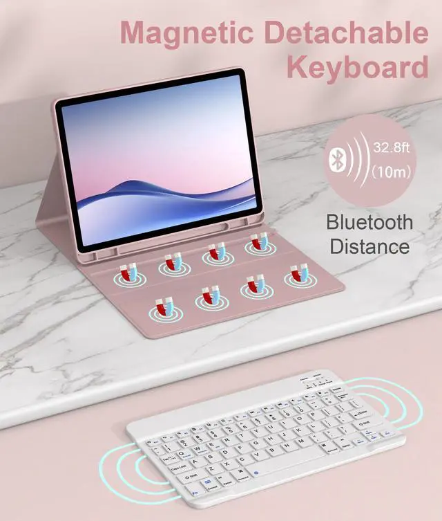 Detachable Keyboard&Full Shortcut Keys- The magnetic wireless keyboard can be removed from the case freely. Compatible with Android, iOS, Windows. Just press Fn and corresponding keys(QWE) to change the keyboard system. Hot keys Customized for Galaxy Tab, Full Shortcut Keys give you a more efficient way to use your keyboard.