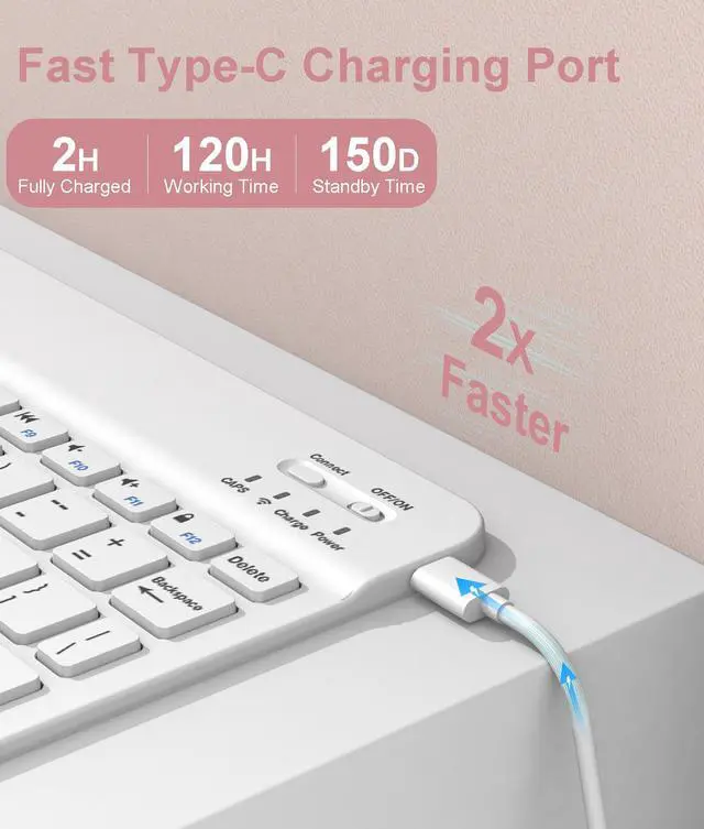 Long Life Battery&Rechargeable Bluetooth Wireless Keyboard&Instant pairing- With its powerful battery,2 hours full charge, work for more than 120 hours, stand by for 150 days. It even enters into sleep mode automatically if not in use for 15 minutes. Ju