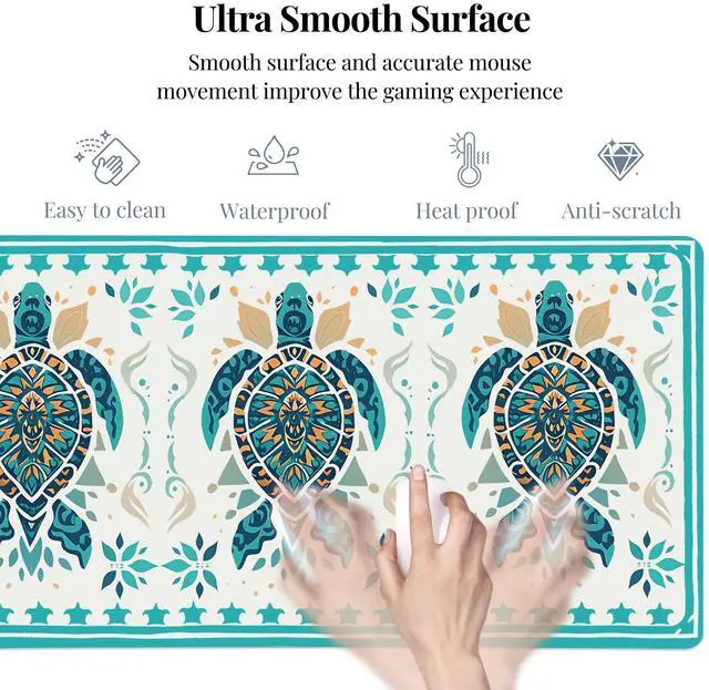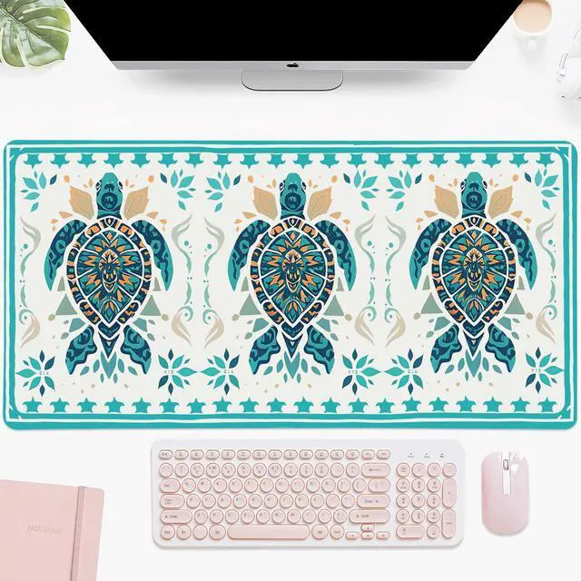 Idocolors Sea Turtle Desk Mat, Cute Extended Gaming Keyboard Mouse Pad, Large Office Desk Cover Mat Pad Deskmat, Non-Slip Leather Home Office Desk Mat Protector 31.5" × 15.7"