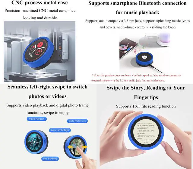 Supports smartphone Bluetooth connection for music playback: Supports audio output via 3.5 mm jack, supports uploading music lyrics and covers, and volume control via sliding the knob.