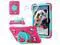 for iPad (A16) 11th Generation Case Kids, iPad 10th Generation with Screen Protector, Rugged Protective Cartoon 3D Panda Warrior Cover with Rotating Stand/Strap/Pen Slot for Kids Teens (Rose+Mint)