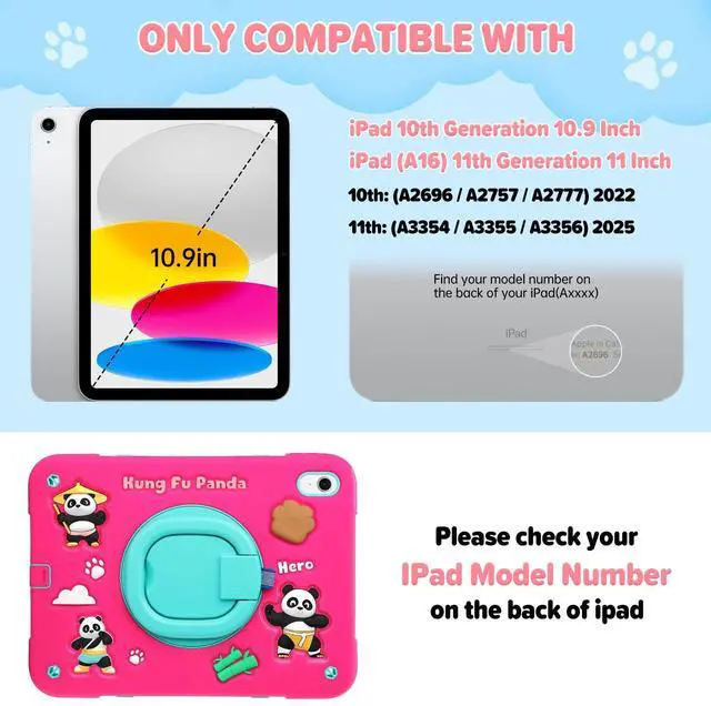 Compatible Model: This cute cool 3D Panda case is specifically designed for iPad (A16) 11th Generation 11 Inch 2025/iPad 10th Generation 10.9 Inch 2022(Model Number: A3354/ A3355/A3356, A2696/A2757 / A2777 / A3162).NOT compatible with any other versions of iPad. Please check the model number of your iPad on the back before purchase.