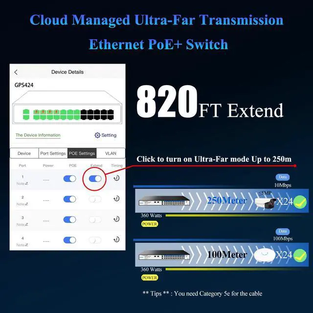 Enhanced Power and Flexibility: Easy Smart Management allows you to manage and configure your network effortlessly via a app or a comprehensive web interface and free software, easily monitor and manage your network from anywhere with the intuitive cloud management interface. Experience the superior power and flexibility of Goalake PoE switches with POE+. Enjoy cost savings and simplified insta