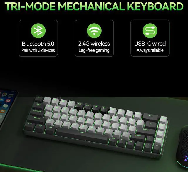 Compact 65% LayoutSpace-saving 65% design retains arrow keys and essential functions. Ideal for gaming, office, and easy to carry on the go.