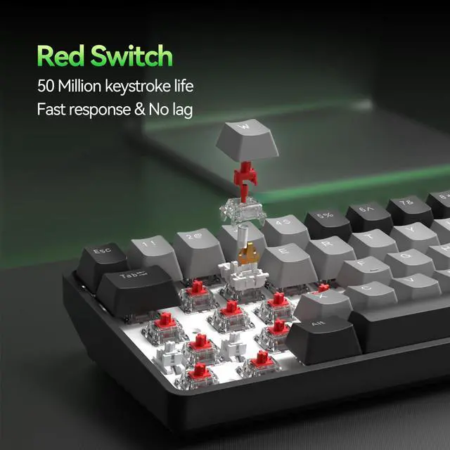 Smooth Red SwitchesLinear red switches provide a quiet and smooth keystroke without tactile bumps, perfect for fast-paced gaming and long typing sessions. Pre-lubed and rated for 50 million keystrokes.
