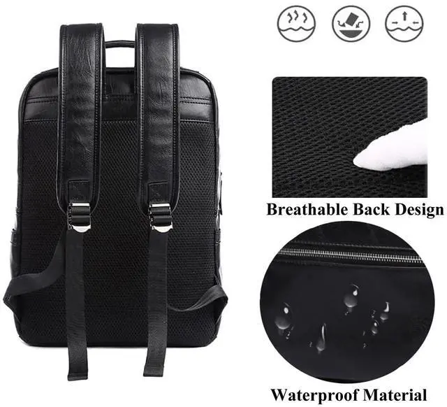 Material & Waterproof: This leather travel laptop backpack is made of soft PU leather, which is waterproof. Even if you encounter light rain on the road, don't be afraid, the water resistance of this bag can provide a dry environment for your laptop for a short time.