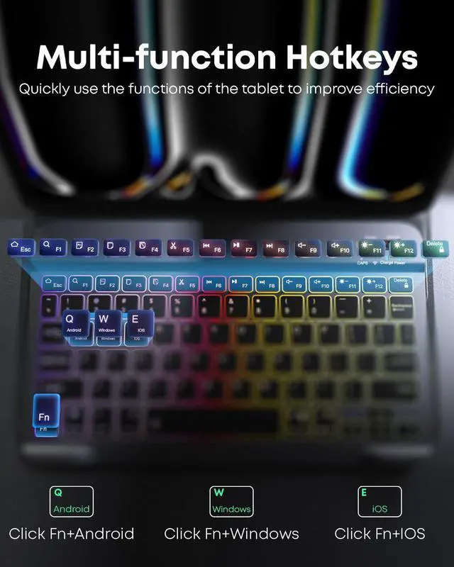 Removable Magnetic Dazzle Backlit KeyboardSamsung Galaxy Tab A9 Plus 11-inch 2023 cases come with a removable magnetic dazzle backlit keyboard. The ultra-thin, lightweight magnetic keyboard attaches securely to the case, helping the tablet stand upright and turn it into a mini laptop in a second. Use the optional Dazzle Backlight mode to choose your favorite light from 6 color combinations and a simple white backlight for smooth typing in the dark, even when working at night.