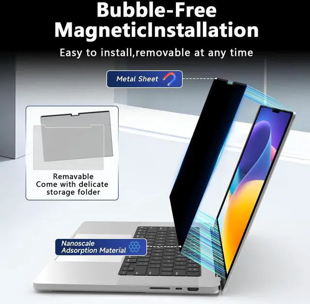 Effortless 2-Second Installation Experience hassle-free setup with LUSA DESIGN upgraded magnetic design on the top and enhanced adhesive on the bottom. Easy to install and remove, ensuring durability and long-lasting use. We are comes with a macbook air 13 inch privacy filter protector storage clip that can be taken and used as needed, perfect for various occasions where screen privacy needs to be protected.Like offices, airports, cafes, trains, etc.