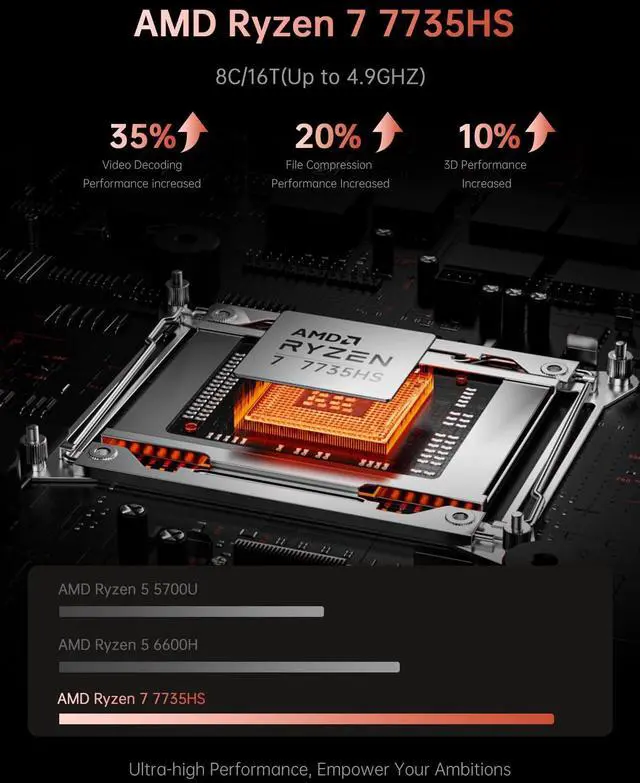 ENGINEERED FOR SPEEDThe KAIGERR 2025 RX16 laptop is equipped with the powerful AMD Ryzen 7 7735HS processor (8C/16T, up to 4.75GHz), delivering superior performance and responsiveness. This upgraded hardware ensures a smooth experience, fast loading times, and high-quality visuals. It provides an immersive, lag-free experience. Its performance is far moere than 30% better than AMD R7 5700U/5800U/5825U/6600HX.