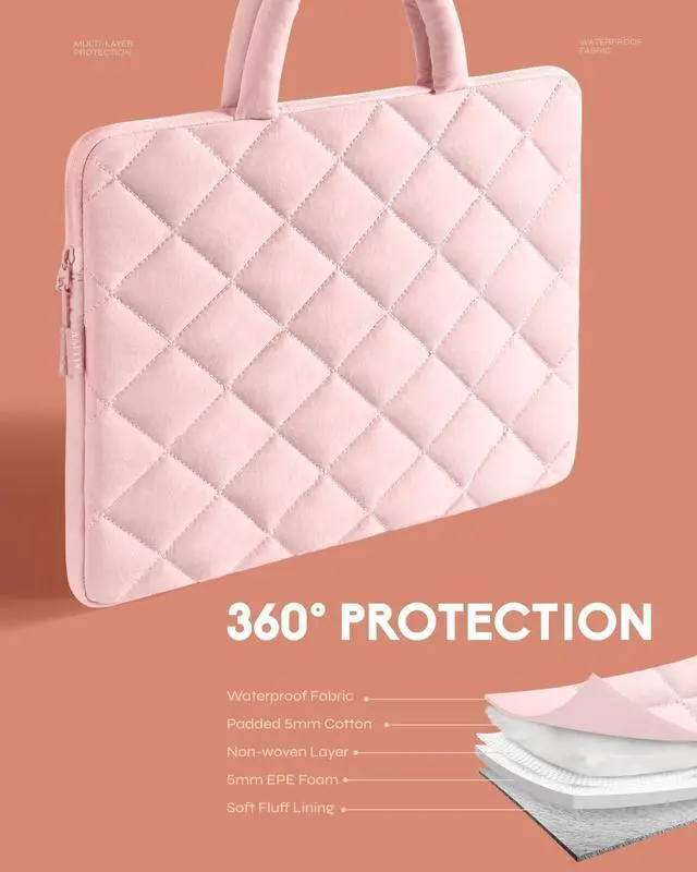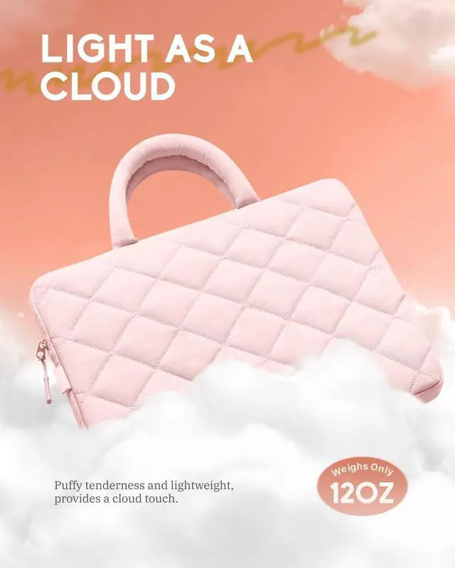Lightweight & Fashionable Design: This laptop sleeve is incredibly light at just 0.6 lbs and features a stylish, cloud-like diamond quilted design, making it easy and fashionable to carry, ideal for daily commutes or as a macbook sleeve