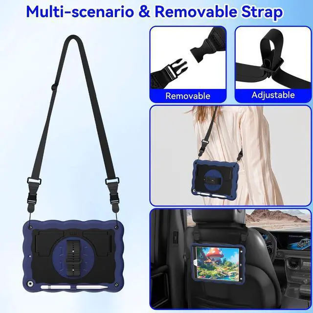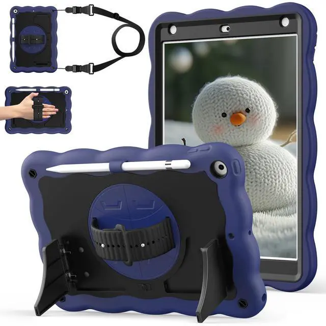 ZoneFoker Case for iPad 9th Generation Case / 8th Gen / 7th Gen 10.2 Inch 2021 2020 2019, Heavy Duty Shockproof Protective Cover with Pencil Holder [360° Rotate Strap] & Stand for Kids, Navy Blue