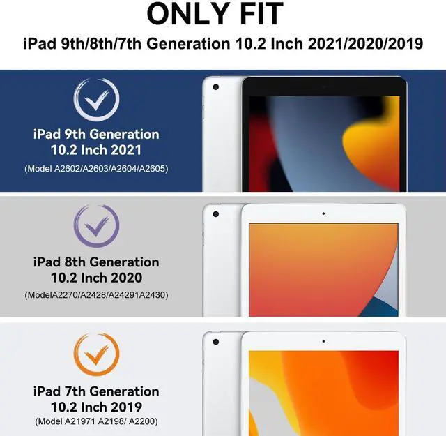 Compatible Models: ZoneFoker Case compatible with 10.2" iPad 9th Generation 2021 Release(Model: A2602/A2603/A2604/A2605)/iPad 8th Generation 2020 Release (Model: A2270/A2428/A2429/A2430)/iPad 7th Generation 2019 Release (Model: A2197/A2198/A2200) NO Screen Protector Included