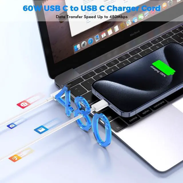 -Cables is long enough for you to lie on the bed, sofa or in the car, office anywhere you need. Type c to Type c supports PD 3.0 fast charging, up to 20V/3A (max) using a USB-C power adapter