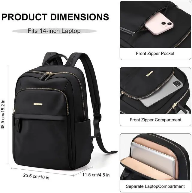 GOLF QUALITY Laptop Backpack for Women Travel Work Commute Casual Daypack Backpack Purse Computer Bags Fit 14 Inch Notebook (Black)