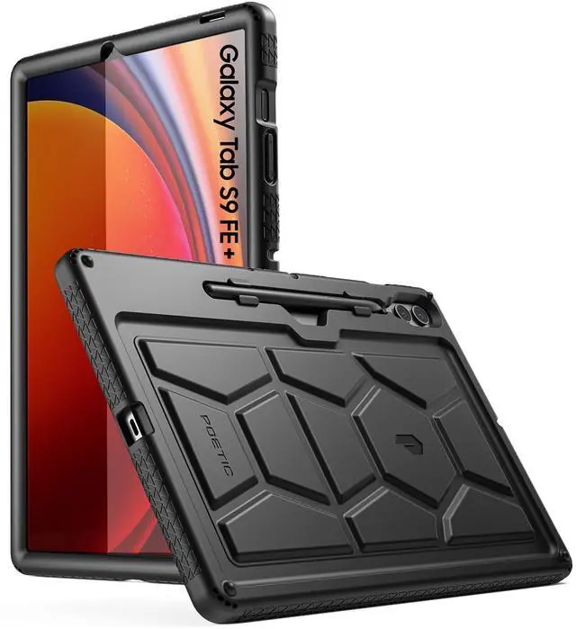 Poetic TurtleSkin Case for Samsung Galaxy Tab S9 FE+ Plus (2023 Release) 12.4 inch Case with S Pen Holder, Heavy Duty Shockproof Kids Friendly Protective Silicone Cover, Black
