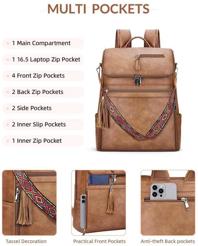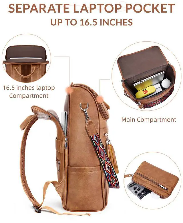 This SYTRAH leather laptop backpack is exquisitely designed and fully functional, making it an ideal choice for business people and travel enthusiasts. The laptop backpack has a total of 13 pockets, fully meeting the storage needs for daily travel and short business trips. It includes a spacious main compartment that can easily accommodate frequently used items such as clothes, magazines, and A4-sized folders. A specially designed zipper computer pocket with soft cushioning material inside can effectively protect laptops from collisions and is suitable for most models of 16 inches and below.