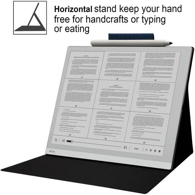 1. Stand Boox go 10.3 magnetic stand Case and the foldable stand are cleverly combined, the horizontal screen supports enable you to handle various use scenarios, stand keep your hand free for handcrafts or typing or eating, so that you can get a better reading experience in different scenarios