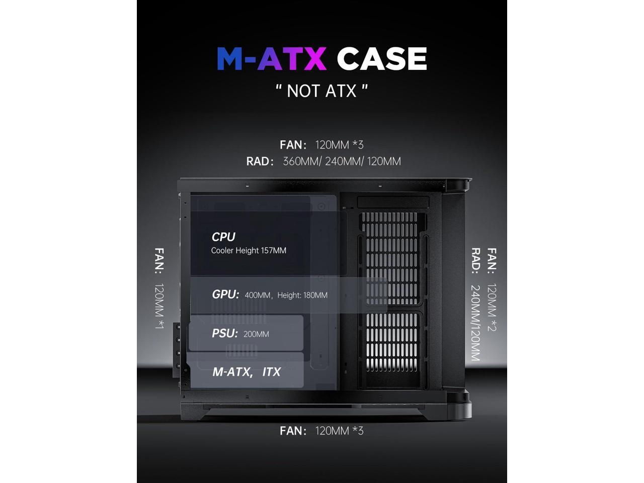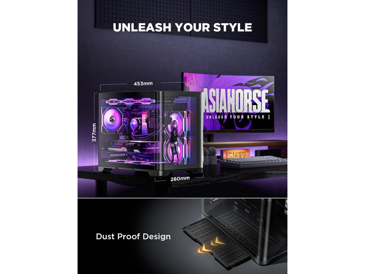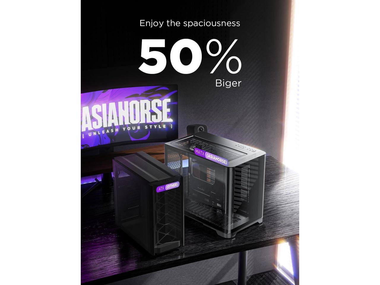 AsiaHorse Pegasus Micro ATX PC Case Dual Chamber 270° Full View Tempered Glass Huge Space MATX Gaming PC Case-360mm Radiator, RTX 40 Compatible, High Airflow Full-Tower MATX Computer Cases-Black