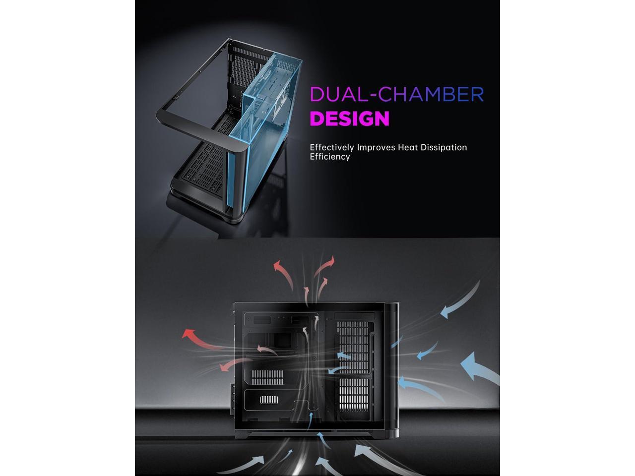 270° Curved Panoramic Glass Design: Equipped with a 270° panoramic tempered glass side panel, featuring smooth curved cornersunlike the rigid right angles of standard PC cases. This curved transition boosts elegance and grandeur with a premium feel. The sharp-edge-free, smooth arc enhances overall sophistication while delivering an immersive, unobstructed view, perfectly showcasing custom components or RGB lighting effects, making your PC build both stylish and tasteful.