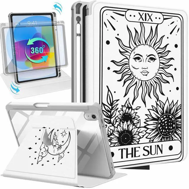 Uppuppy for iPad A16 Case - for iPad 10th Generation Case 10.9 Inch Women Cute Girls Sun Moon Pretty Girly Kawaii Aesthetic Unique Fashion Rotating Stand Folio Tablet Cover for Apple 10/11 2025