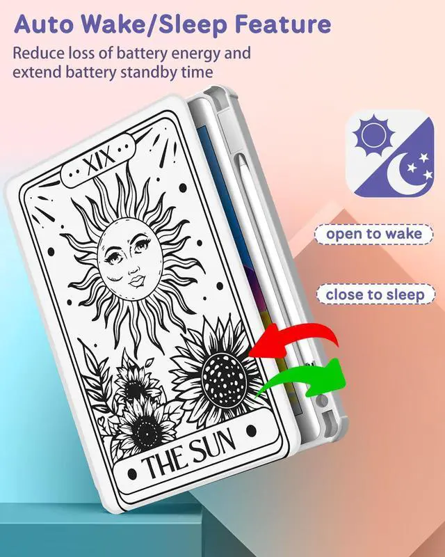 Auto Sleep/Wake: Built-in magnetic strip, this tablet case with the smart funtion of auto sleep/wake, no wasting the power energy and extend your iPad standby time