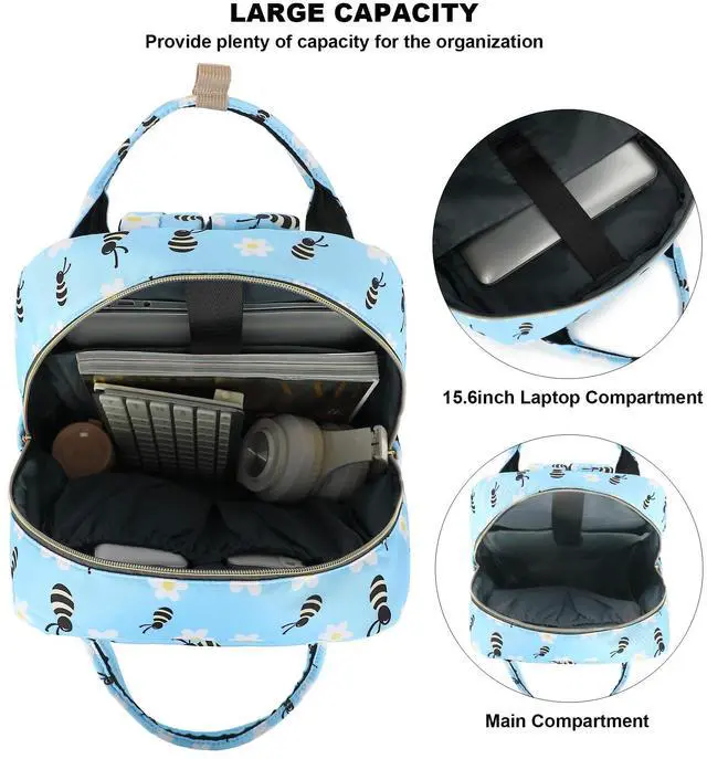 Bee Laptop Backpack College Bookbag School Backpack for Women Girls, Travel Backpack 15.6 Inch Computer Backpacks