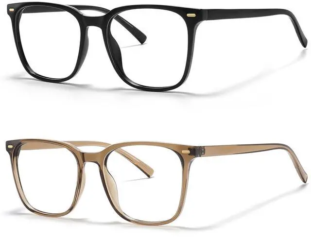 MACJERO 2-Pack Oversized Square Blue Light Blocking Glasses for Women Men, Anti-Fatigue Computer Monitor Gaming Glasses Reduce Eye Strain(Black+Brown)