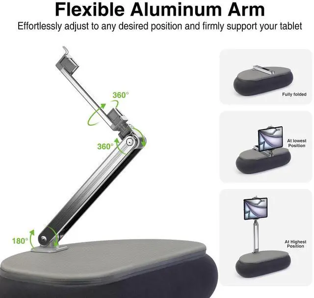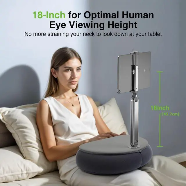 Optimal Eye-Level Viewing Previously, you might have found yourself hunched over awkwardly while reading in bed. But now, with this iPad bed stand, you can elevate your tablet comfortably on your lap, eliminating the need to crane your neck. It aligns perfectly with your eye level, guaranteeing an unbeatable viewing experience. Whether you're lying down, seated, reclined, or prone, it transforms your relaxation time into pure bliss.